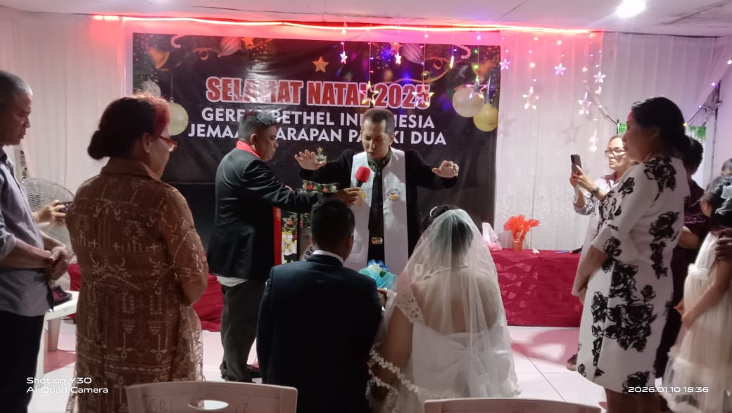 Manado, LintasKabarkan.ID — Sepasang muda mudi melangsungkan pernikahan secara sederhana yang hanya di hadiri oleh keluarga dan saksi dari kedua mempelai pada hari Sabtu, 10 Januari 2025.