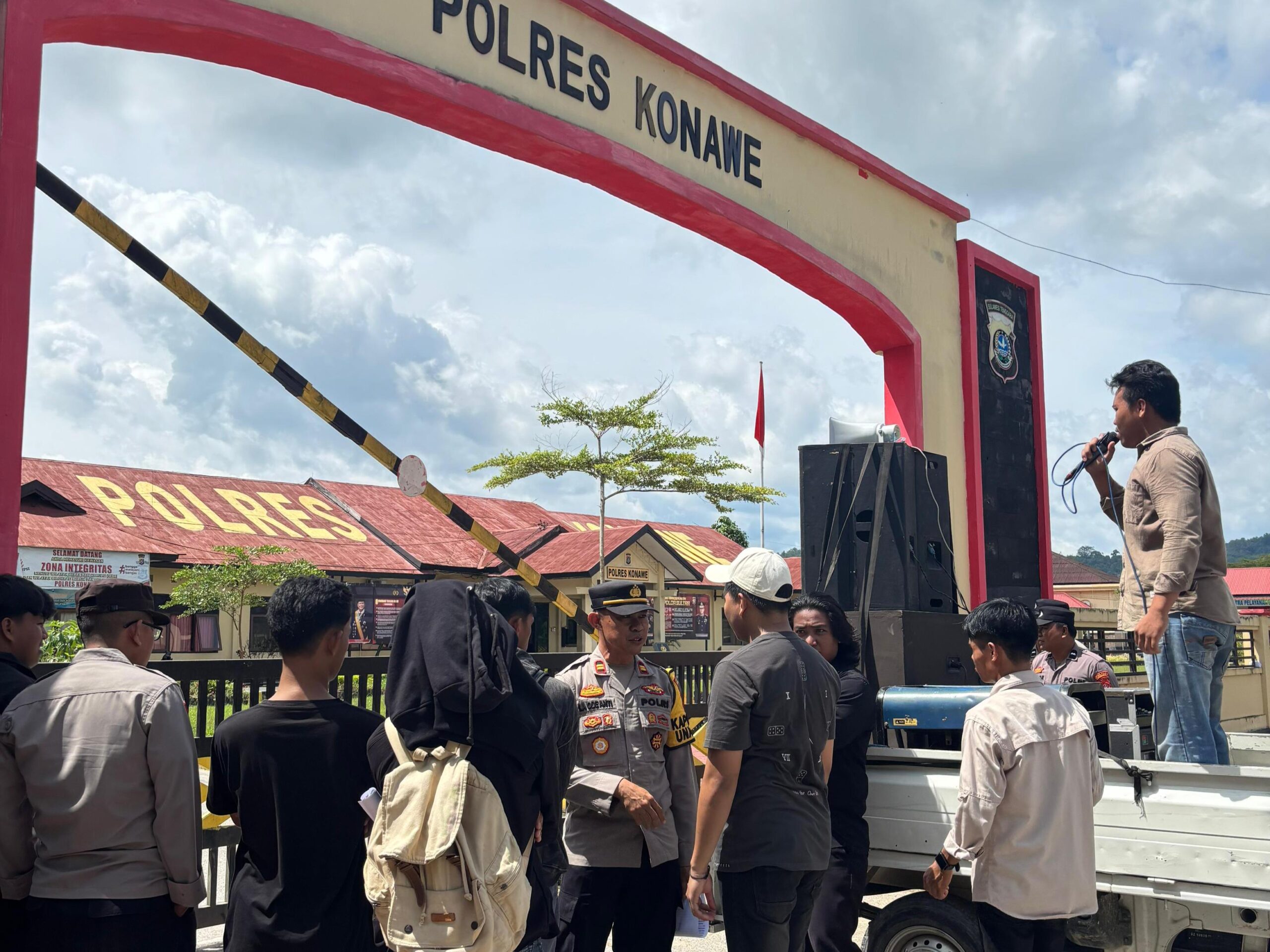 LINTASKABARKAN.ID, KONAWE – Gerakan Aktivis Mahasiswa Sulawesi Tenggara (GAM Sultra) menggelar aksi unjuk rasa di Markas Polres Konawe dan Kantor Kejaksaan Negeri (Kejari) Konawe. Aksi tersebut dilakukan untuk mendesak aparat penegak hukum mengusut dugaan aktivitas tambang Galian C ilegal di Kecamatan Meluhu serta dugaan penggunaan material ilegal pada proyek peningkatan dan rehabilitasi jalan yang bersumber dari APBD Kabupaten Konawe Tahun Anggaran 2025.