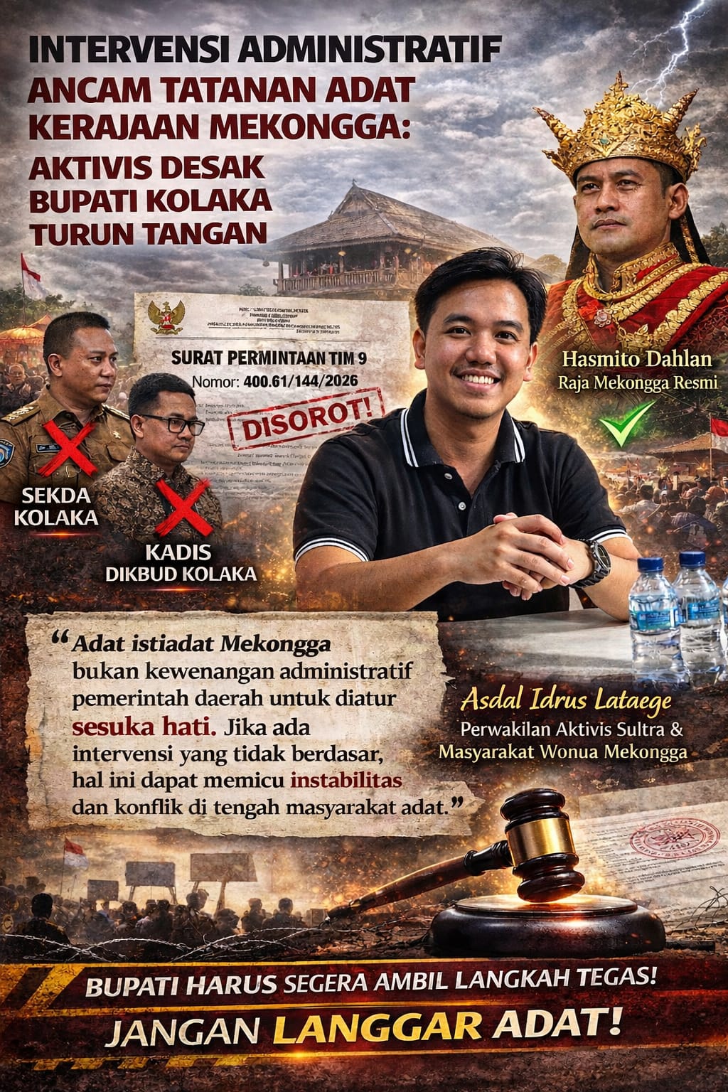 Menurutnya, langkah klarifikasi dan dialog antara pemerintah daerah dan unsur adat diperlukan guna menjaga stabilitas sosial serta keharmonisan masyarakat adat Mekongga.