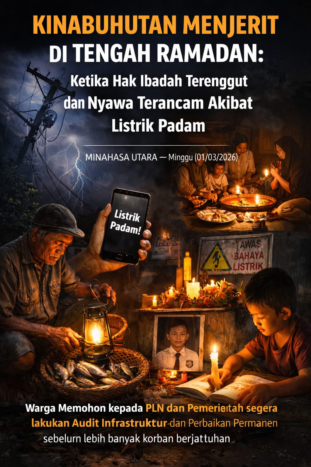 MINAHASA UTARA, Lintaskabarkan.id — Gangguan listrik yang terus berulang di Desa Kinabuhutan, Minahasa Utara, kini tidak lagi dapat dipandang sebagai sekadar persoalan teknis. Di tengah momentum bulan suci Ramadan — saat masyarakat seharusnya beribadah dengan tenang dan khusyuk — kondisi listrik yang hidup-mati bahkan padam total telah mengganggu pelaksanaan puasa warga secara signifikan.Minggu (01/03/2026)