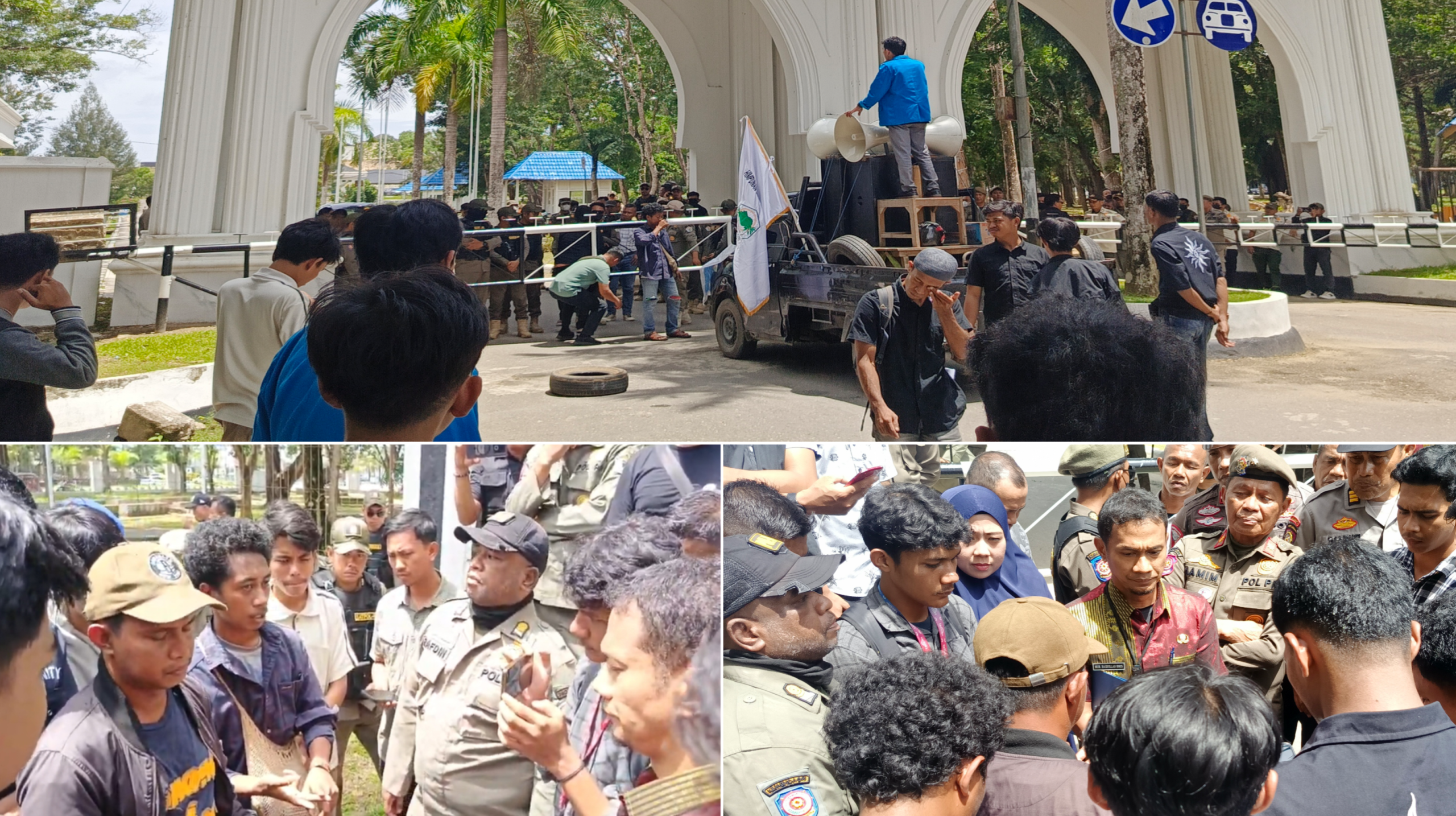 Aksi sempat diwarnai ketegangan ketika massa berencana membakar ban sebagai bentuk protes. Namun, upaya tersebut dicegah oleh Satuan Polisi Pamong Praja (Satpol PP) yang mengamankan ban dari lokasi aksi. Meski sempat terjadi ketegangan, situasi berhasil dikendalikan dan aksi tetap berlangsung kondusif.