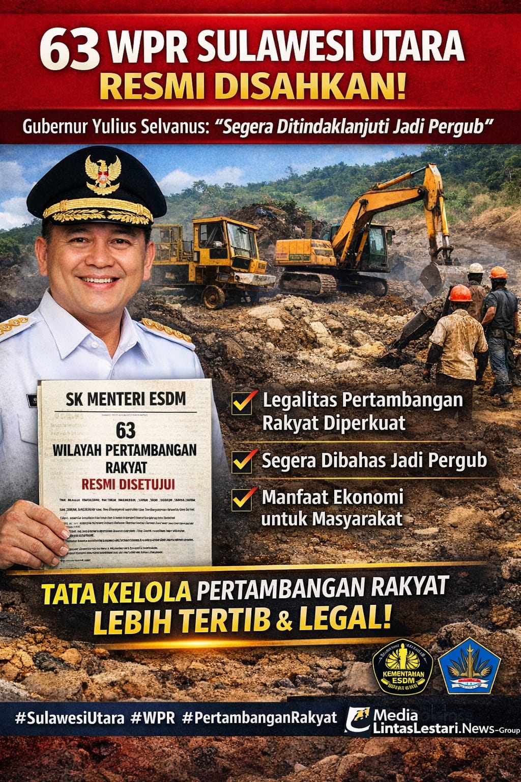MANADO, lintaskabarkan.id – Sektor pertambangan rakyat di Sulawesi Utara memasuki babak baru dengan disahkannya Surat Keputusan (SK) Menteri Energi dan Sumber Daya Mineral (ESDM) Republik Indonesia yang menetapkan 63 Wilayah Pertambangan Rakyat (WPR) di provinsi tersebut. Dokumen hukum vital ini kini telah resmi berada di tangan Pemerintah Provinsi Sulawesi Utara, membuka jalan bagi legalisasi dan penataan aktivitas pertambangan rakyat yang telah lama dinanti.