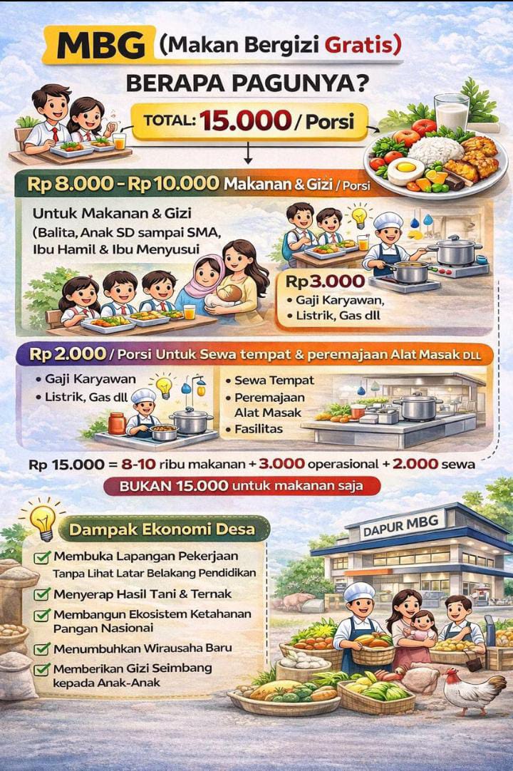 Dengan demikian, SPPG menegaskan bahwa angka Rp15.000 merupakan total biaya layanan secara menyeluruh, bukan semata-mata biaya bahan makanan.
