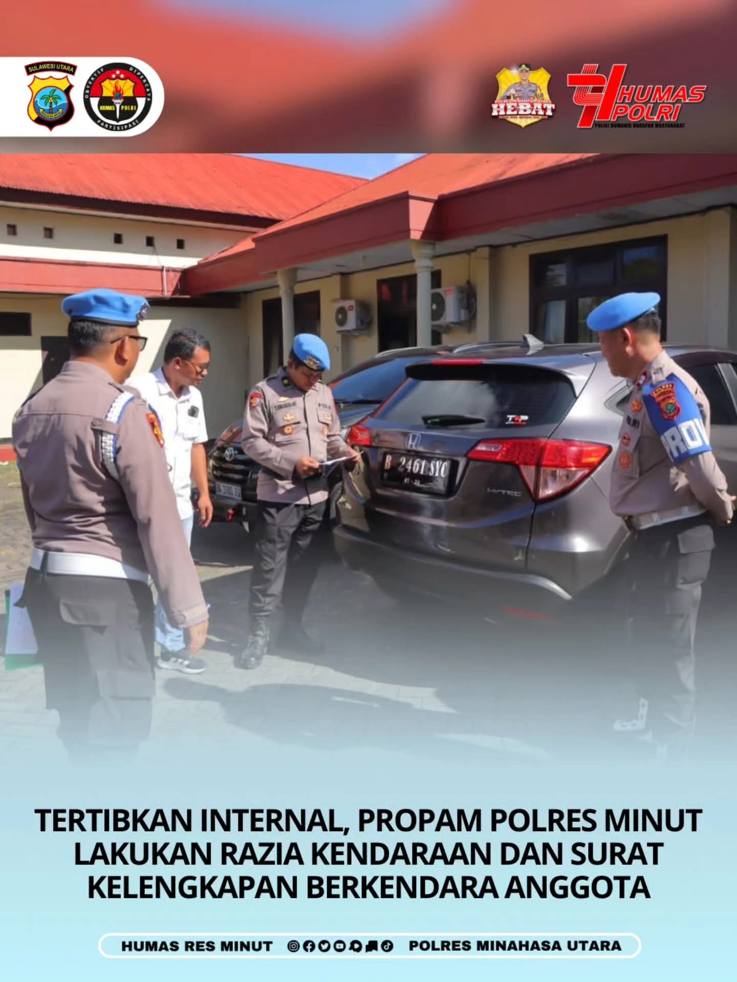 Kegiatan penertiban internal tersebut dipimpin langsung oleh Kasi Propam Polres Minut, Iptu Toni Simaremare, dan dilaksanakan di lingkungan Markas Polres Minahasa Utara, sebagai bagian dari pengawasan melekat terhadap personel Polri. Razia meliputi pemeriksaan SIM, STNK, kondisi fisik kendaraan, serta kelengkapan administrasi lainnya yang wajib dipatuhi oleh setiap anggota Polri sebelum melaksanakan tugas di lapangan.